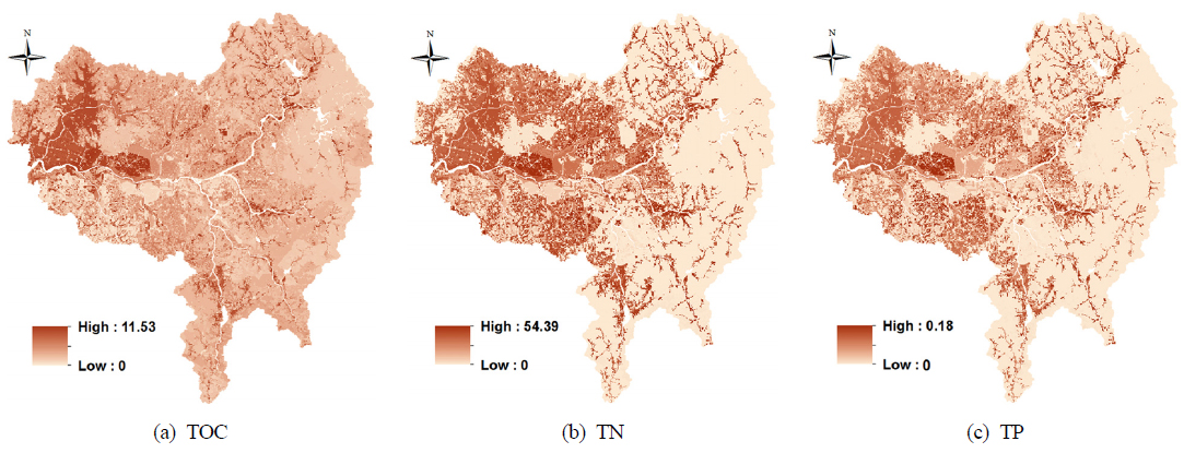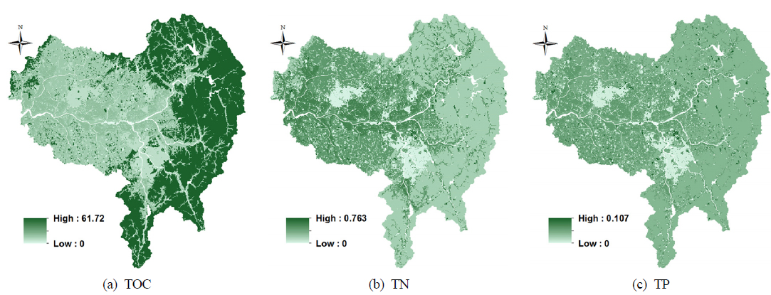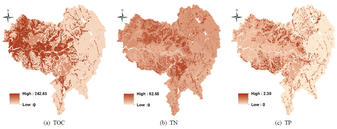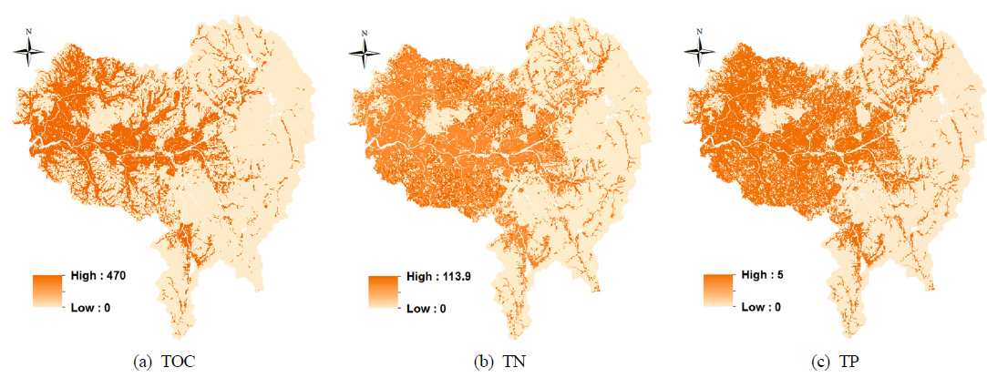 영향을 받게 되는데, 본 연구의 TOC의 경우 보·검정 과정에 이 부분이 상대적으로 과대평가된 것으로 사료된다. 또한 격자기반의 모형의 경우 각 격자에