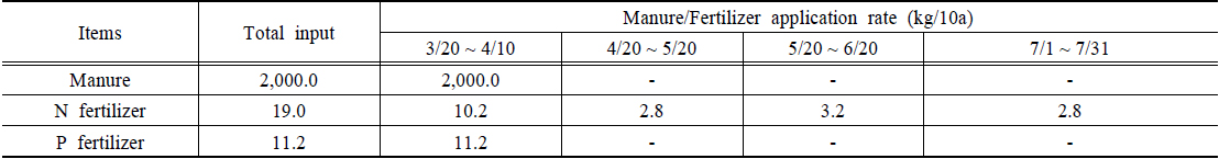Regional and seasonal fertilizer application rates for paddy fields in the Mankyung