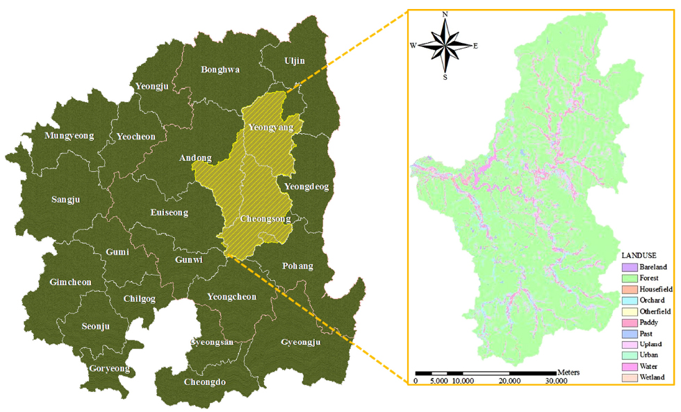 본 연구의 연구대상지역은 북위 35˚35’~36˚00’, 동경 127˚ 20’~127˚45’에 위치한 임하댐 유역으로 낙동강유역 면적의 5.7%를