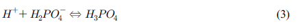 [TiCl4]를 0.45 mM로 고정하고 초기 pH에 따른 인 제거효율을 살펴보았다. 초기 pH 3-11의 범위에서 인 제거효율은 초기 pH가 증가할수록 증가하며 pH 7까지 99.6%로 증가하였다. 그러나 초기 pH가 7 이상에서는 인 제거효율이 감소하며 pH 7에서 최고 제거효율을 보였다(Fig. 2). 선행연구(Zhao et al., 2011)에서 TiCl4를 이용해 pH 4-11의 범위에서 실험한 결과 UV254 제거효율의 경우 pH 8까지 95%로 제거효율이 증가하다가 pH 8 이상에서는 급격히 감소하는 것을 보였으며 DOC 제거효율의 경우 pH 9까지 85%로 제거효율이 증가하다가 pH 9이상에서는 감소하였다. 제거 대상 물질은 다르지만 모두 포물선의 형태를 보이며 본 실험의 결과와 유사한 경향을 보였다. pH 7이하에서 인 제거효율이 낮은 이유는 산성조건에서 인산염은 수소이온을 가진 HPO42-, H2PO4-, H3PO4형태 (식 (1) - 식 (3))로 존재하려한다(Sawyer et al., 2003). 따라서 산성조건에서는 수소이온을 가진 인산염이 수소이온과 용해가 어려워 금속이온과 응집이 제한된다고 판단된다.