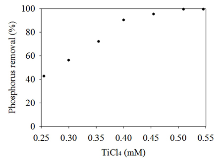 Effect of TiCl4 concentration on phosphorous removal efficiency.
