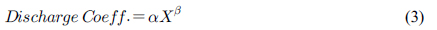 Constants and exponents for calculation of NPS discharge coeff. in study area