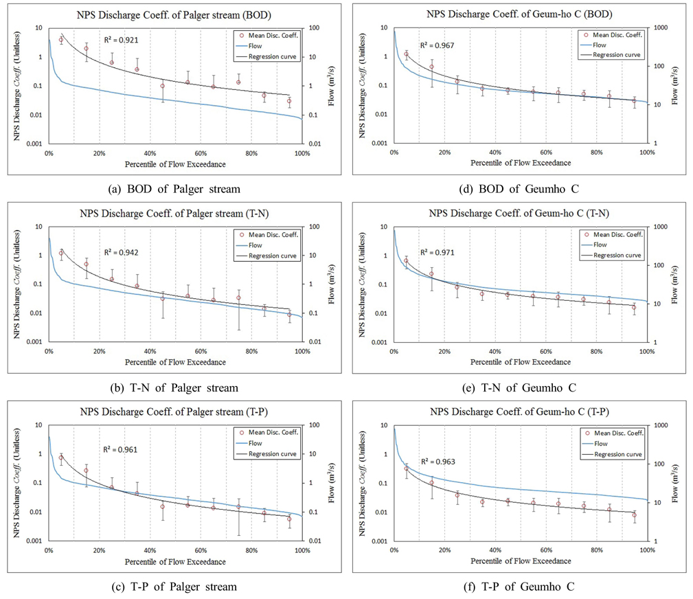 NPS discharge coefficients of Palger stream and Geum-ho C watershed.