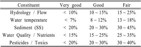 바탕으로 Donigian (2000)은 일반적인 모델효율의 범위와 신뢰구간을 Table 2와 같이 제시한 바 있다.