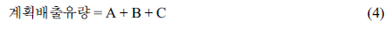 계획배출유량과 계획배출수질을 결정해야한다. 계획배출유량은 식 (4)와 같이 과거 3년 산술평균유량 및 이행시기별 예측 평균유량의 합으로 산정하며,