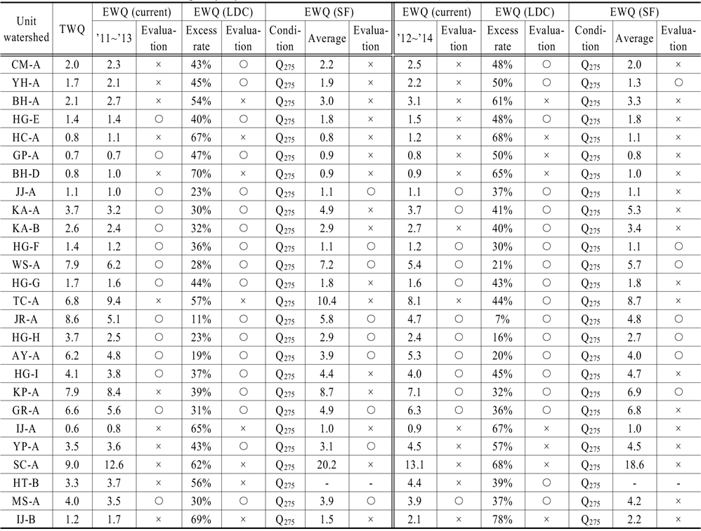 5) 본 연구는 한강수계의 시행 단위유역인 26개 단위유역만 적용·평가한 결과로 타수계에도 LDC평가방법을 적용해보고 기존방법과의 비교 결과를 추가적으로