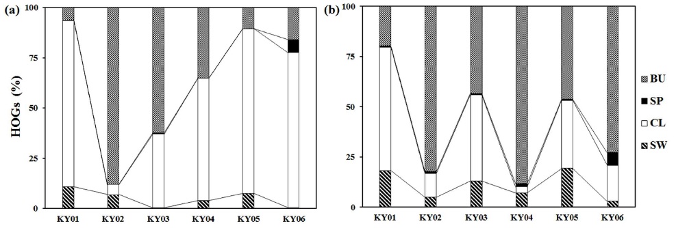 HOGs)을 분석하였다. 섭식기능군은 걸러먹는 무리(Collector-filterer; CF), 주워먹는 무리(Collector-gatherer;