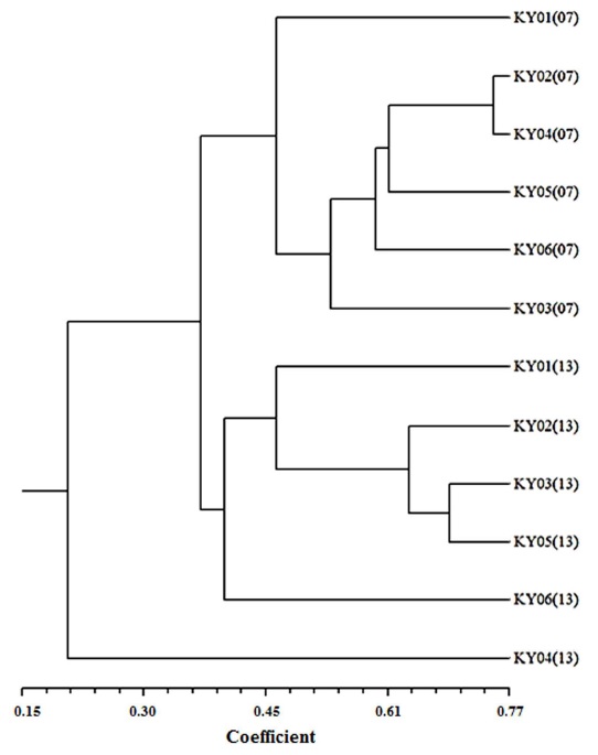 복원사업 전인 2007년에는 KY02 지점과 KY04 지점이 유사성이 높았다. 이러한 결과는 복원사업 전의 KY02 지점은 KY04 지점과 유사하게