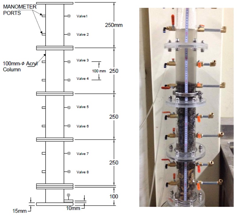 shown in Figure 1, was used to observe the clogging formation in a sand filter column. The sand filter