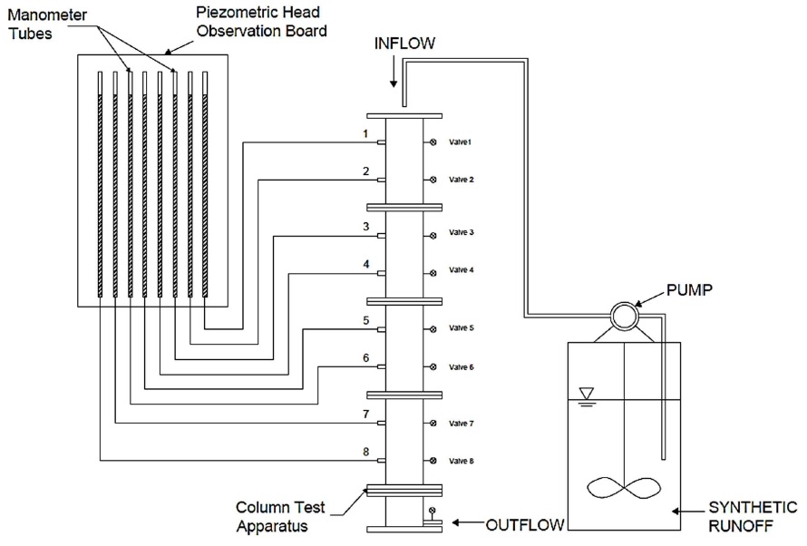 filter system under continuous vertical flow condition through laboratory column experiments.