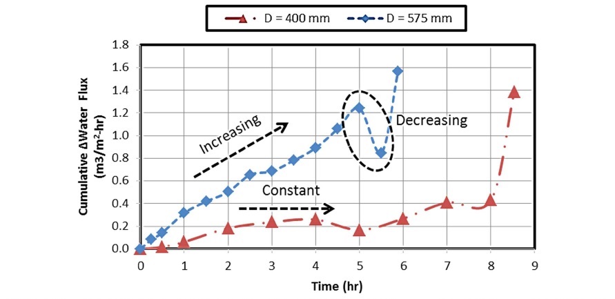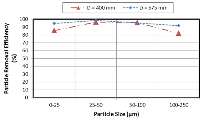(45-50 pore volume of the filter media), for filter media depth of 575 and 400 mm