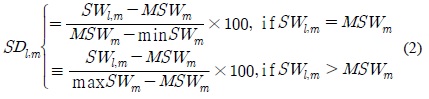 ์ฌ๊ธฐ์ SDl,m : ํ ์์๋ถ ๋ถ์กฑ๋(%), SWl,m : ์ฃผ๋ณ ํ๊ท ํ ์์๋ถ(cm3 cm-3), MSWm : ์ฅ๊ธฐ๊ฐ์ ์ฃผ๋ณ ์ค๊ฐ๊ฐ(cm3 cm-3), maxSWm : ์ฅ๊ธฐ๊ฐ์ ์ฃผ๋ณ ์ต๋๊ฐ(cm3 cm-3), minSWm : ์ฅ๊ธฐ๊ฐ์ ์ฃผ๋ณ ์ต์๊ฐ(cm3 cm-3), l: ๋ชจ์๊ธฐ๊ฐ(1973-2014), ๋ฐ m = 1-52 ์ฃผ(์ผ๋