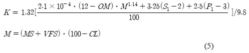 여기서, K : 토양침식성 인자(Mg·hr/MJ/mm)
