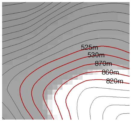 Example of abrupt changes in elevation in contour line - Index No. 37810062 (NGII).