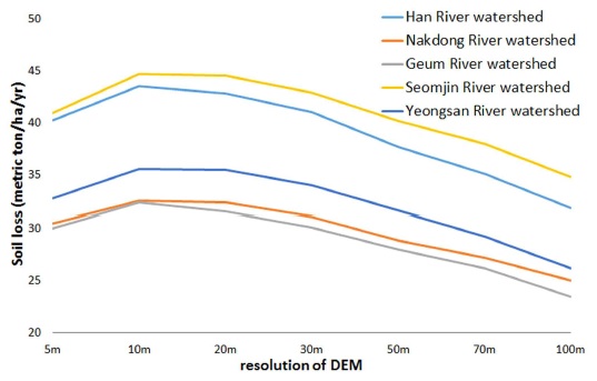 지역의 자료를 이용하여 평가하기 때문에, 공간자료 해상도가 토양유실량에 미치는 영향을 파악하지 못하는 경우가 많이 있다. 그러나 토양유실에 미치는