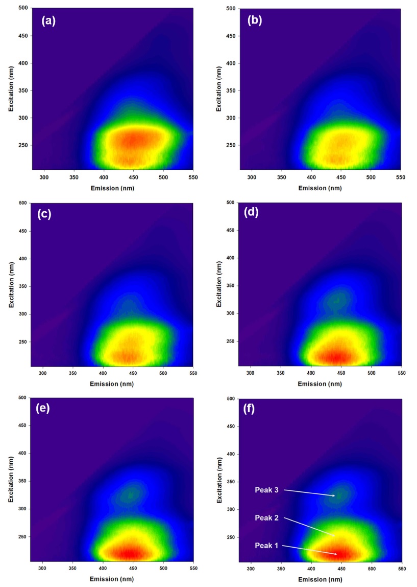 방법으로 측정하여 물에 의한 형광 특성을 배제하였다(Phong and Hur, 2015).