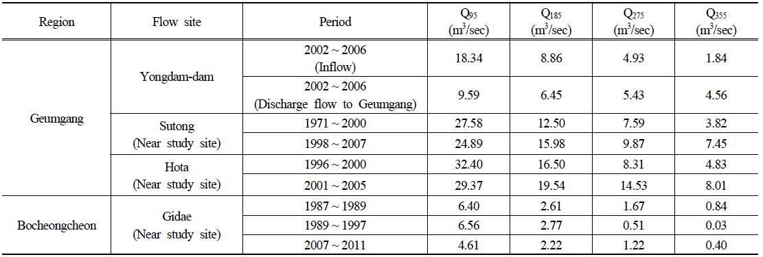 조사지역 인근에 위치한 추풍령 및 금산 관측소 자료를 토대로 1984~2012년까지 강수량을 조사하였고, 금강홍수통제소의 수문연보(1980~2011)