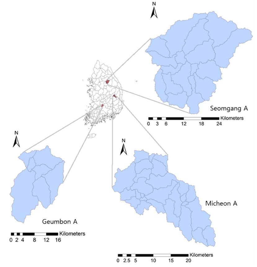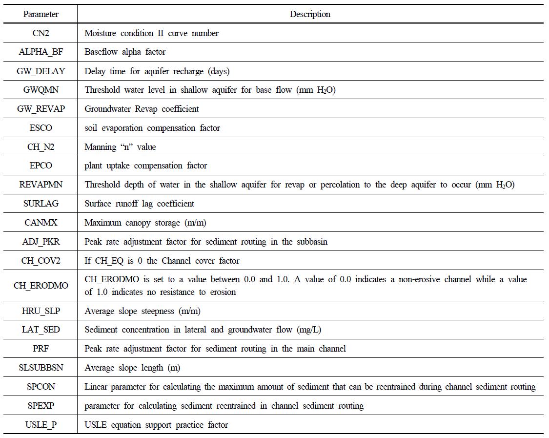 바와 같이 SWAT 모형이 각 유역의 유출량과 유사량을 정확히 평가할 수 있을 것으로 판단되었으며 이를 1일 실측 자료로 가정하여 활용하였다.