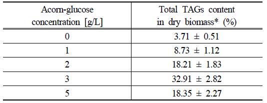 The above findings suggest that acorn-glucose is a potential substrate for the mixotrophic
