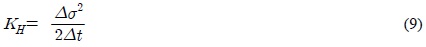 여기서, dx, dy는 직교좌표계, u, v는 x, y 방향으로의 유속, dt는 시간간격, KH는 수평확산계수이다.