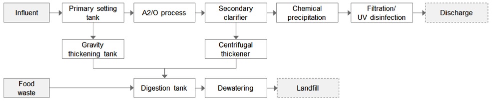 연구 대상이 되는 하수처리시설은 처리용량 680,000 m3/일로 운영되는 A2/O 공정으로 선택하여 분석하였다. 이는 하수처리장의 처리규모가 클수록 전력소비량이 증가한다는 Cho et al. (2011)의 분석 결과에 의해, 처리규모가 클수록 에너지 소비량과 영향변수들의 사이에 뚜렷한 패턴이 존재할 것으로 추측되었기 때문이다. 2014년 해당 하수처리시설의