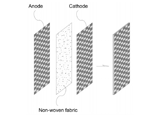 방지하기 위하여 산화전극과 환원전극 사이에 부직포(1 mm)를 설치하였다.