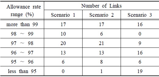 Number of links in each scenario according to the allowance rate