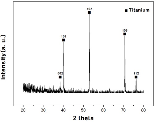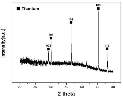 Fig. 4에서 보여지듯 양극산화 반응을 통해 얻어진 반응물인 TiO2 nanotube plate를 XRD분석을 했을 시 양극산화 반응 전 titanium plate와 동일한 지점의 피크를 관찰할 수 있었다.