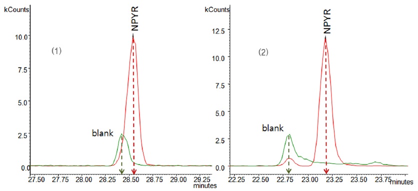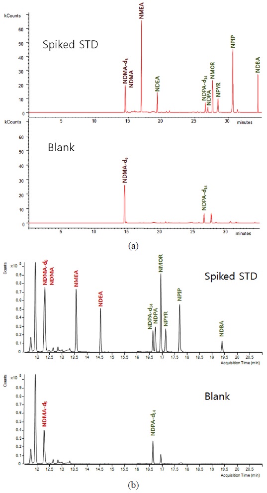 둘 다 N-nitrosamines을 분석하여 다른 연구자와 대등한 데이터를 얻을 수 있는 것으로 판단되었다.