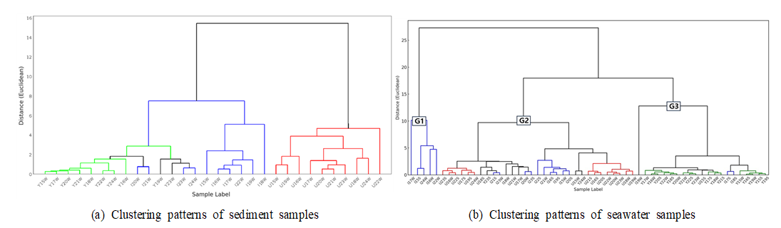 PCA/군집 분석을 통해 SPM (Suspended Particulate Matter) 변동이 금속의 오염도 및 출처 해석과 연결됨을 제시하였다.