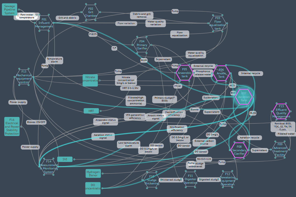 특히 동절기 유입하수의 저수온으로 인한 질소 제거 효율 저하 사례 분석 22건을 통해 F07(폭기조) 중심의 허브-스포크 구조와 순환 피드백 메커니즘을
