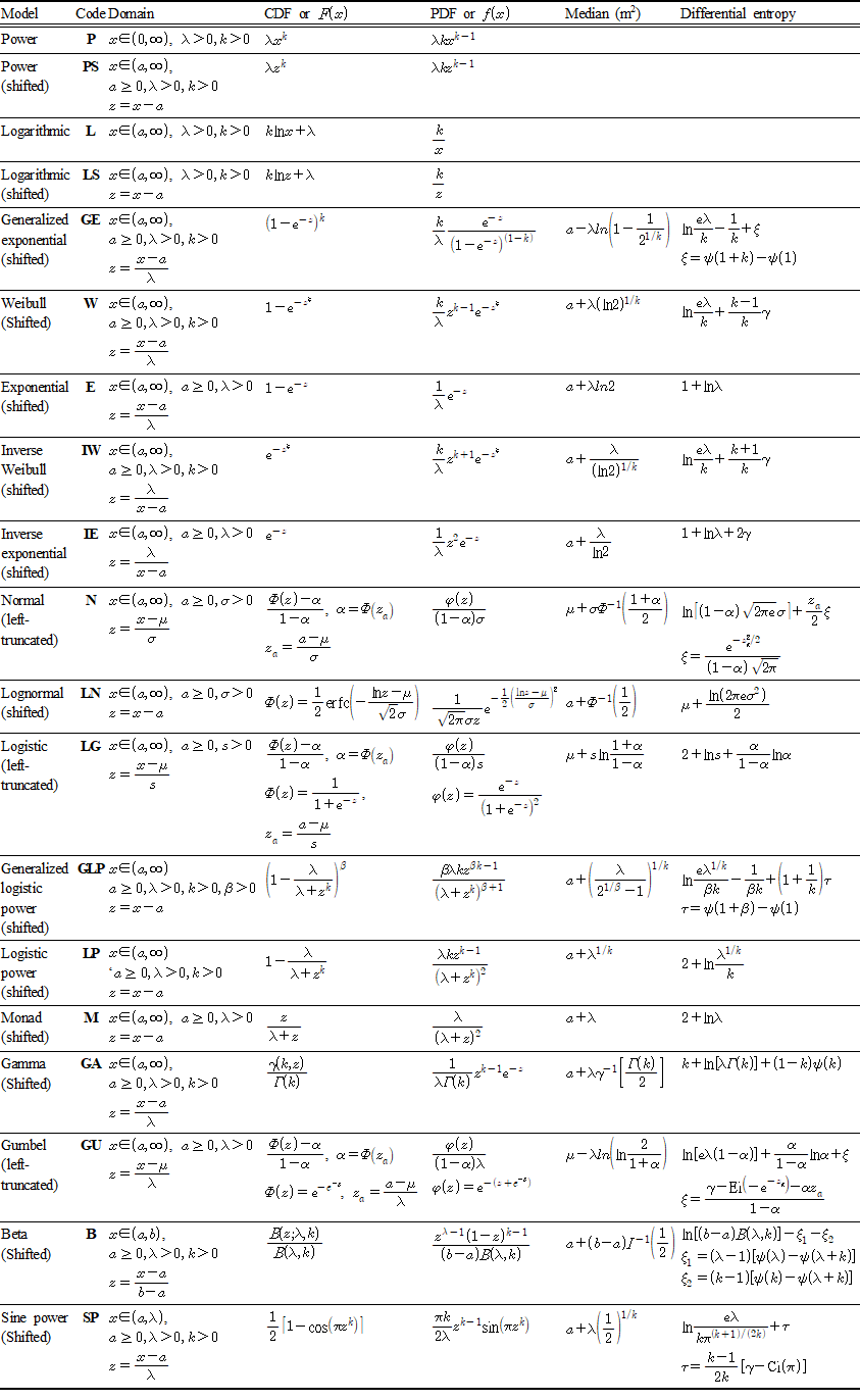 LN: Lognormal, GLP: Generalized logistic power, GA: Gamma, B: Beta, SP: Sine power