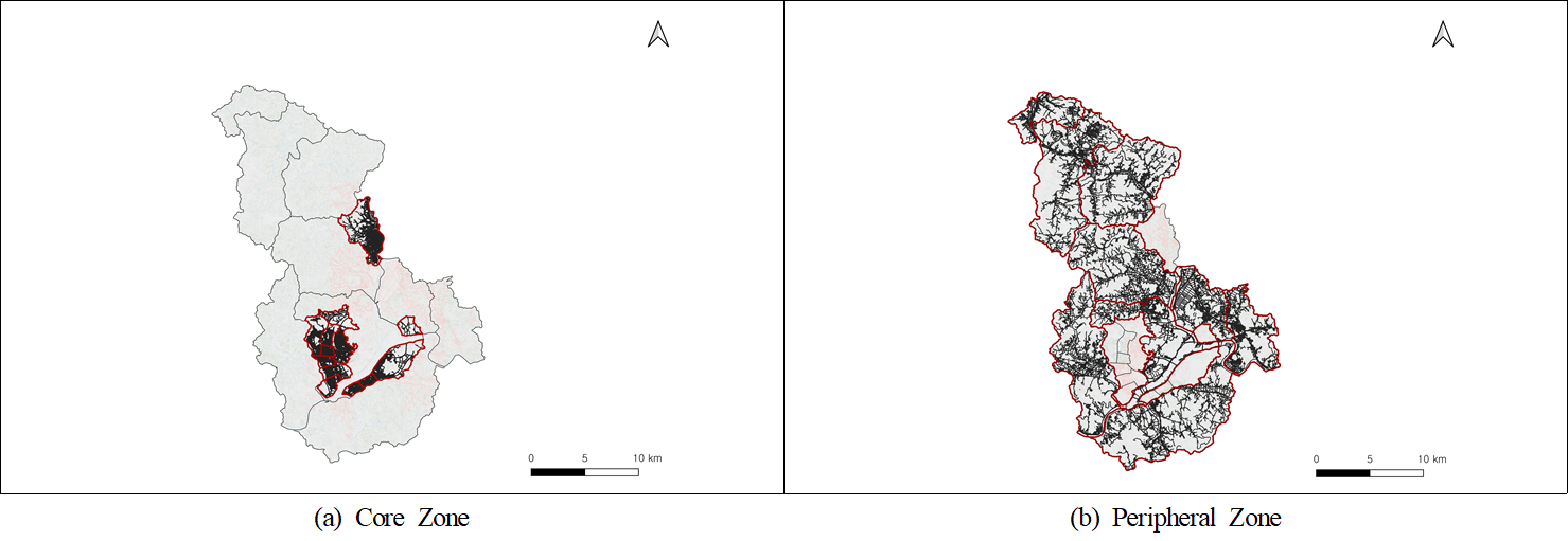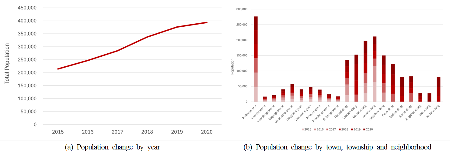 본 연구의 대상지인 세종시는 2012년 공식 출범 이후 지속적인 도시개발이 이루어지면서 중심지역과 배후지역 간 인프라 및 지형적 차이가 뚜렷하게 나타나는