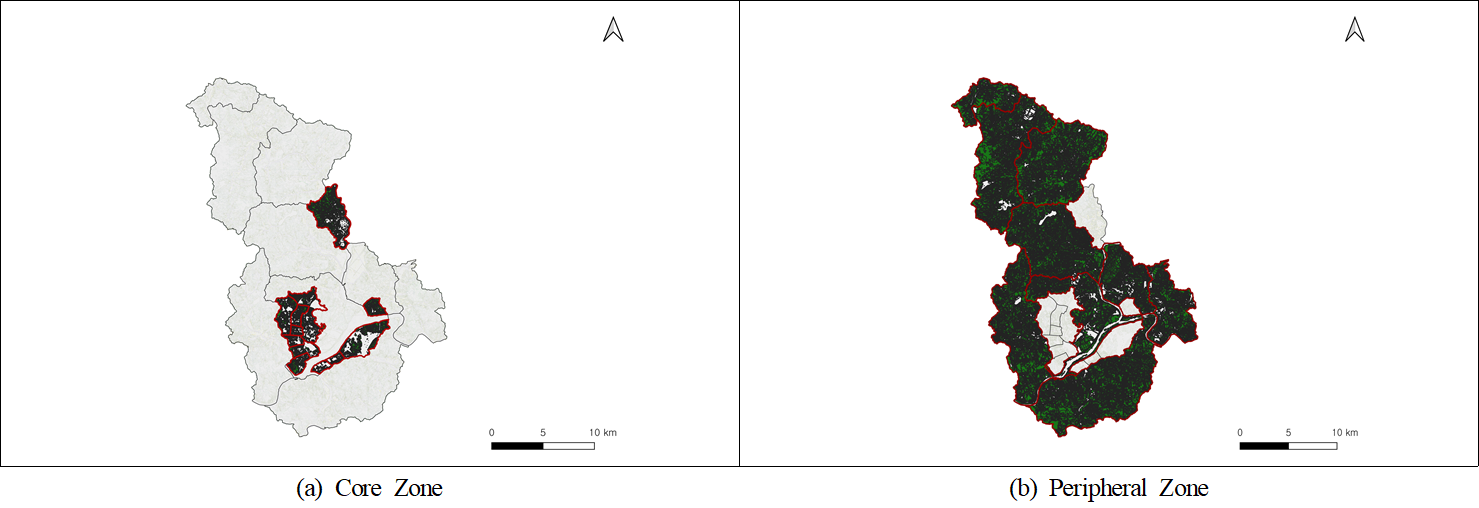 완만한 증가세를 보였다. 이러한 불균형한 변화는 중심지역이 급격한 토지이용 변화를 겪고 있음을 보여주며, 이에 따른 침수 위험의 심화 가능성을 시사한다(Sejong Special Self-Governing City, 2021).