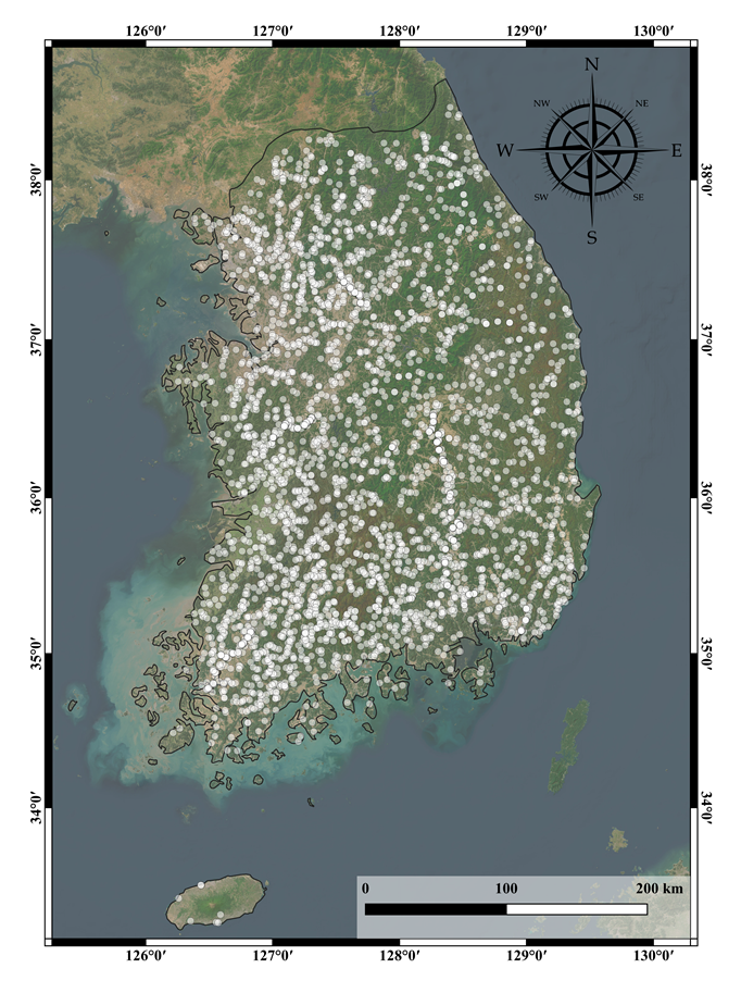Fig. 1. Geographic distribution of 3,333 study sites surveyed across South Korea from