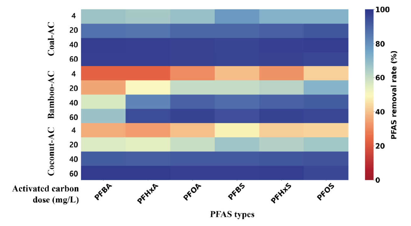 자리 잡고 있기 때문에 석탄계 활성탄 외에 바이오매스 기반 활성탄의 PFAS 흡착 효율 증대를 위한 연구가 필요한 실정이다. 본 연구에서는 수계에서