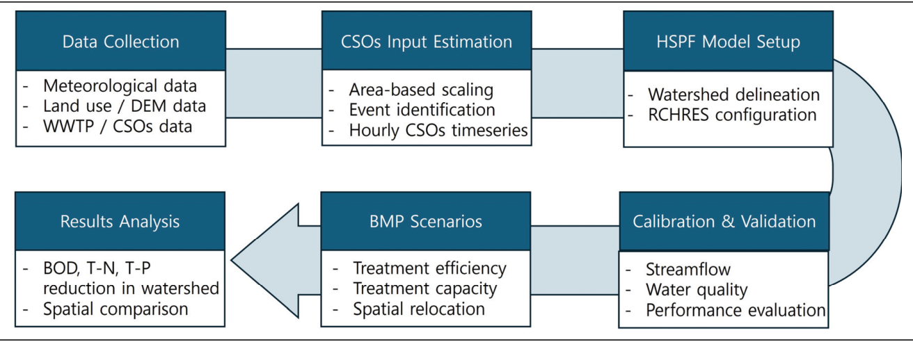 적용, 유지관리 주기 및 운영 현실성을 반영한 평가가 병행되어야 할 것이다(Lee et al., 2019). 또한, 기후변화에 따른 강우 패턴 변화와 CSOs 발생 특성을 고려한 시나리오 기반 모의, HSPF 모형을 활용한 비점오염 저감을 위한 조림지