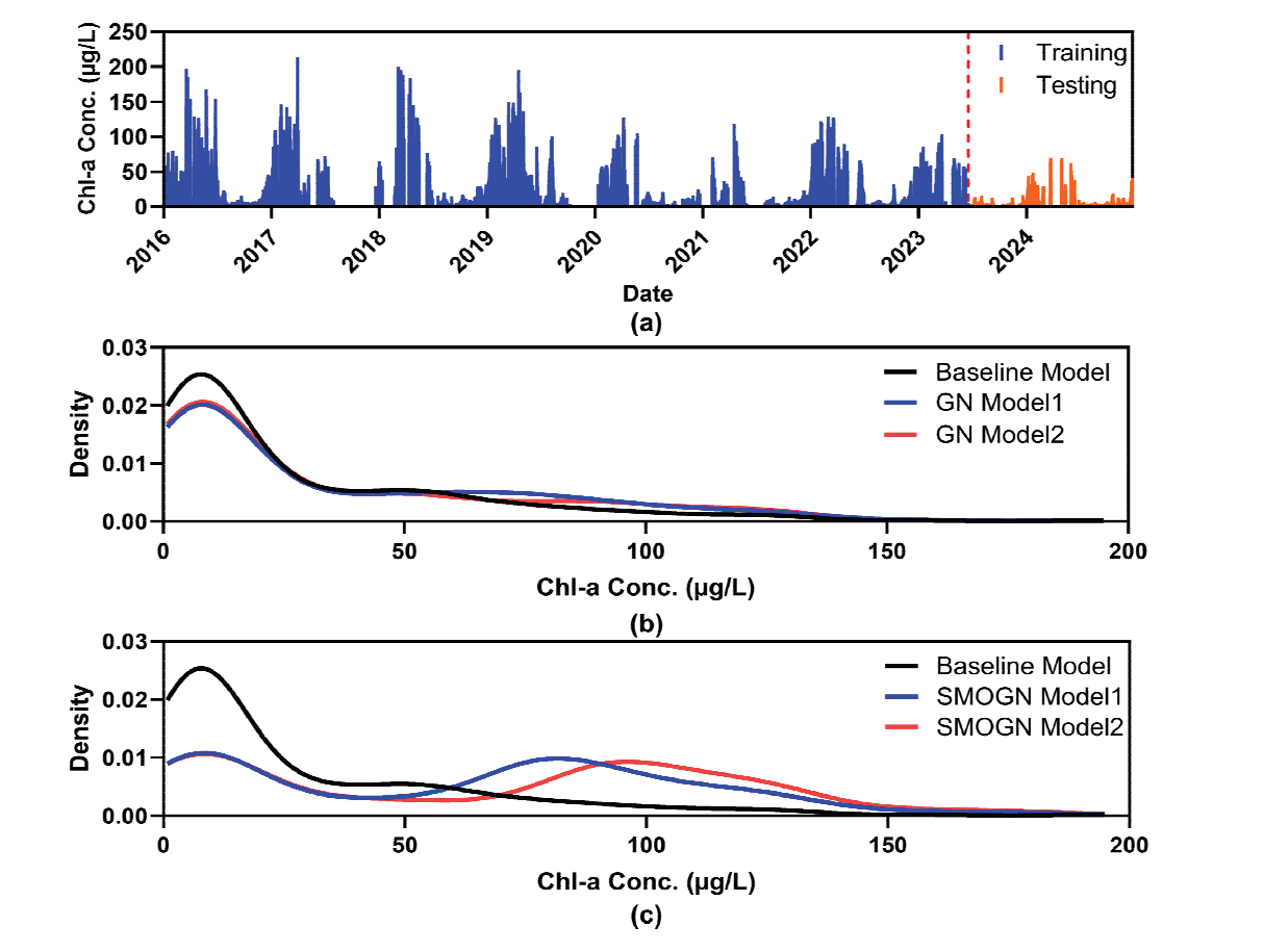 RMSE는 9.82 µg/L (±6.84)로 fold 간 편차가 크게 나타나 계절적 변동에 취약함을 확인하였다. SMOGN 기법의 고농도 구간 예측