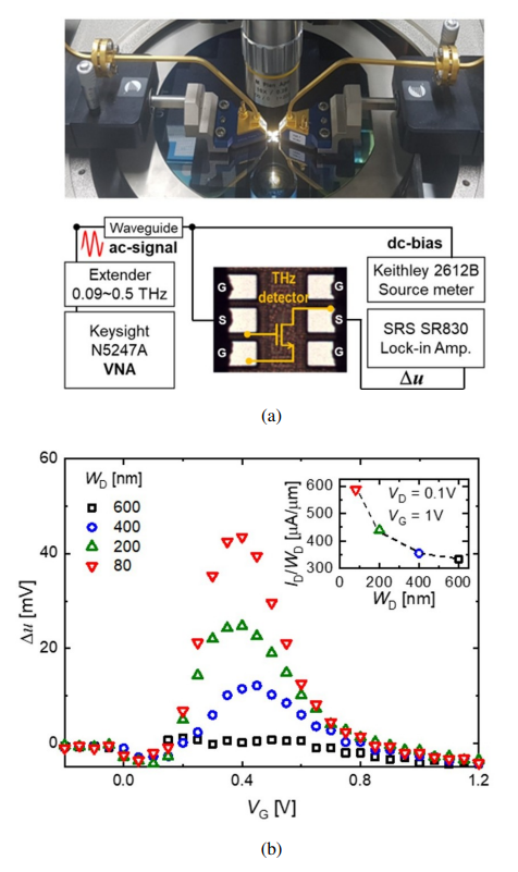 Fig. 1(a) shows the plasmonic THz detector based on Si FET that operate in a non-resonant mode.