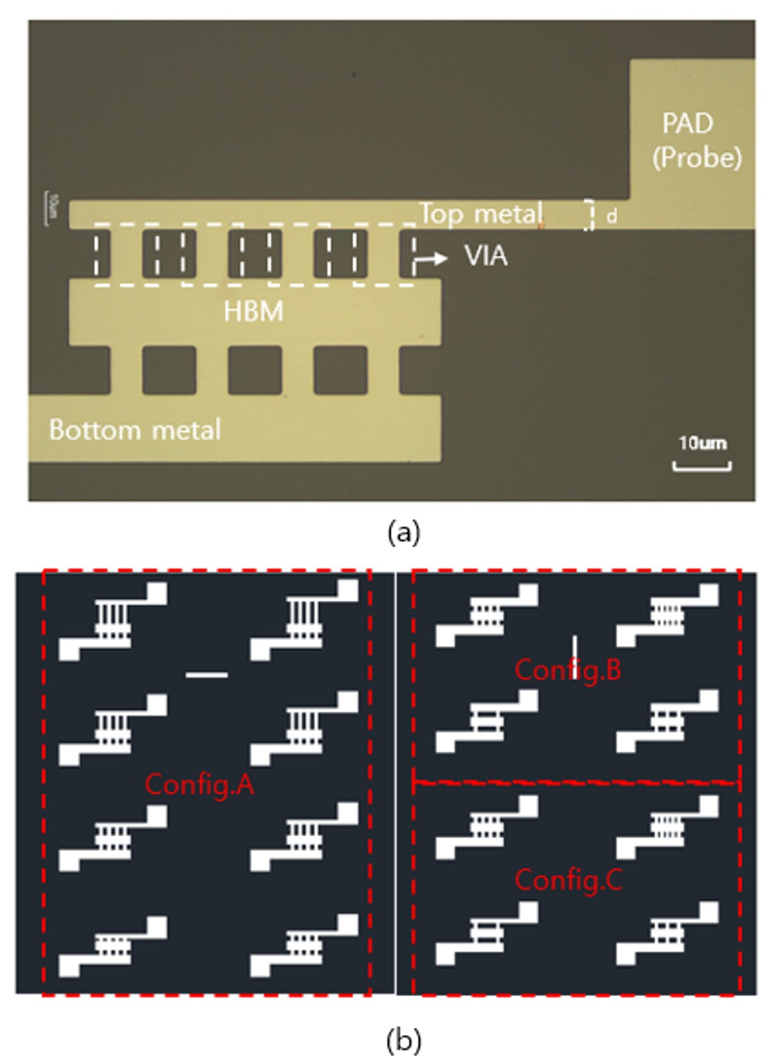 and Hybrid Bonding Via (HBV) connections. (d) Illustration of the 4-metal hybrid bonding