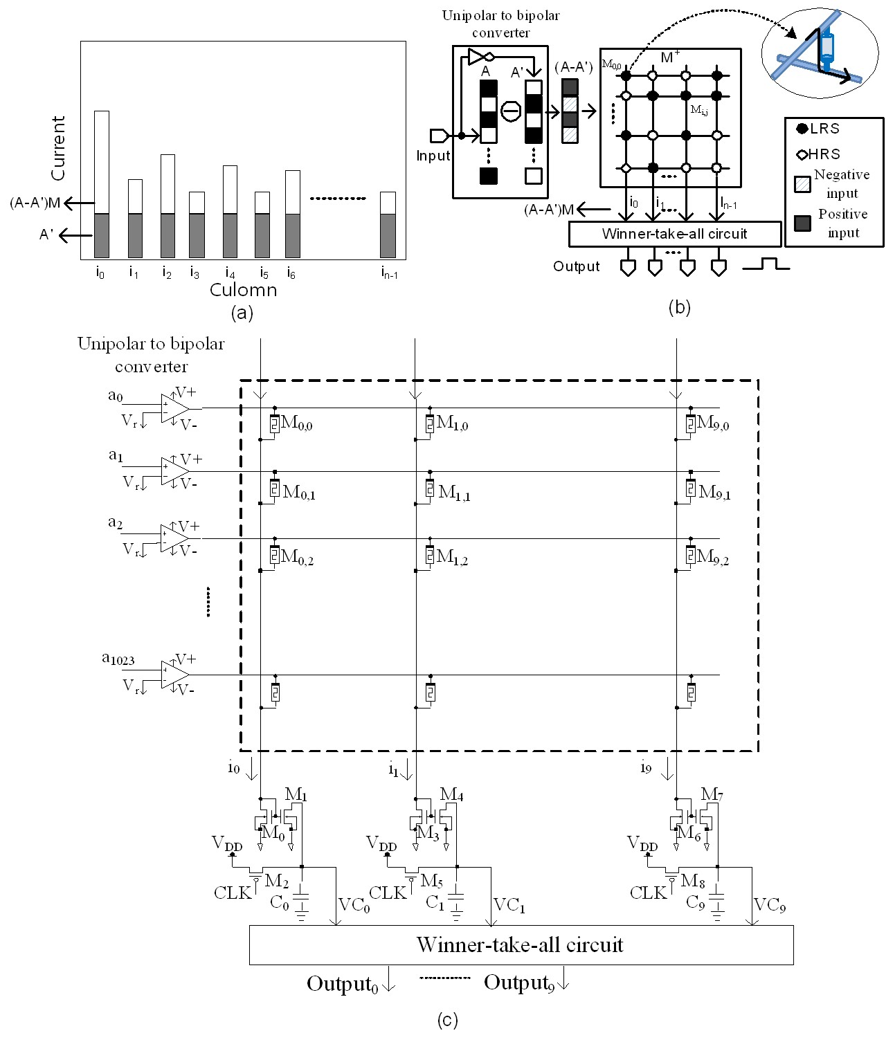 crossbar circuit with bipolar inputs for neuromorphic image recognition [29]. This architecture is an optimized version of the memristor-based neuromorphic designs,