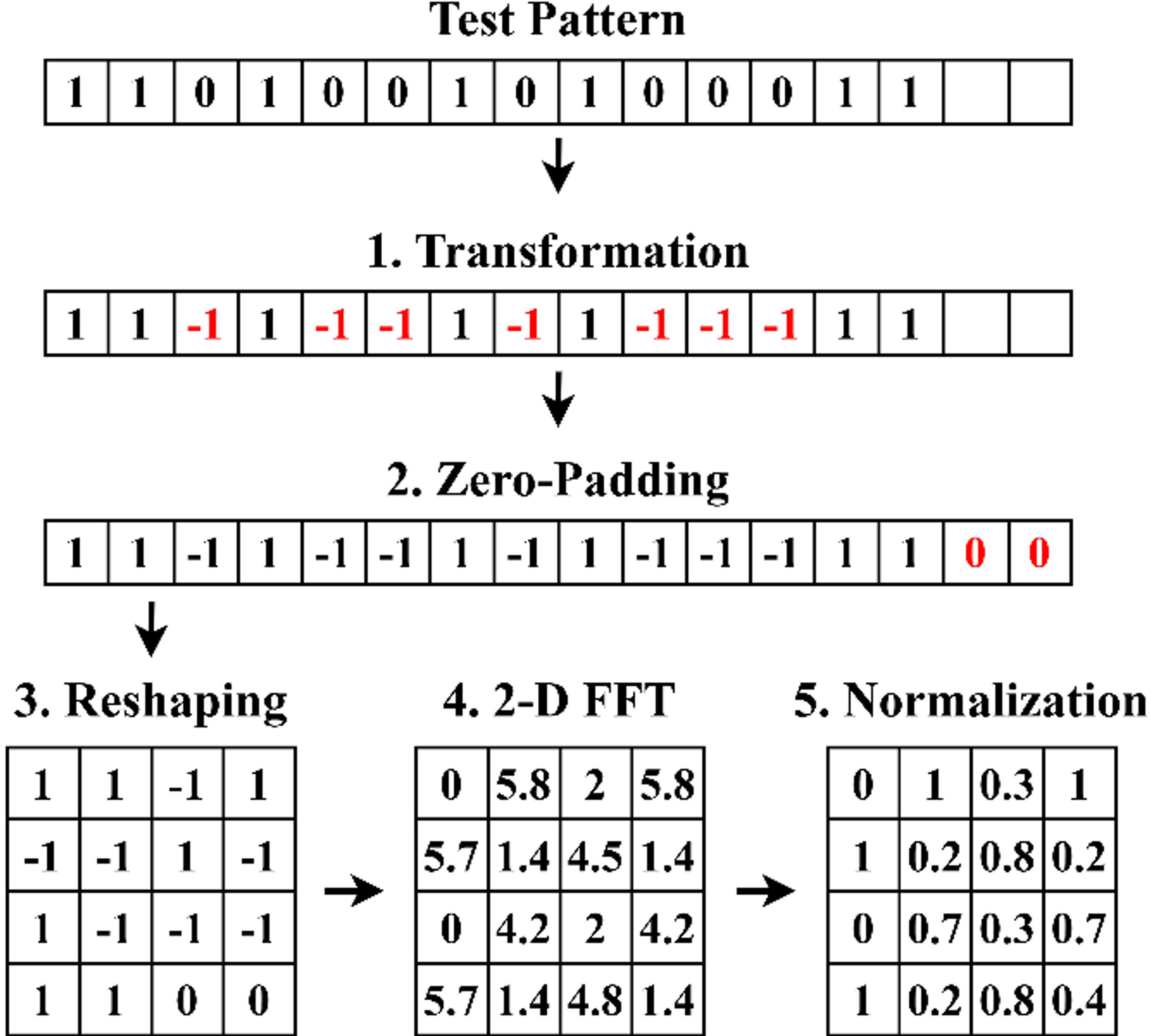 CNNs and the proposed model, as shown in Table 1. As a result, converting test patterns into spectral images using the FFT proved
