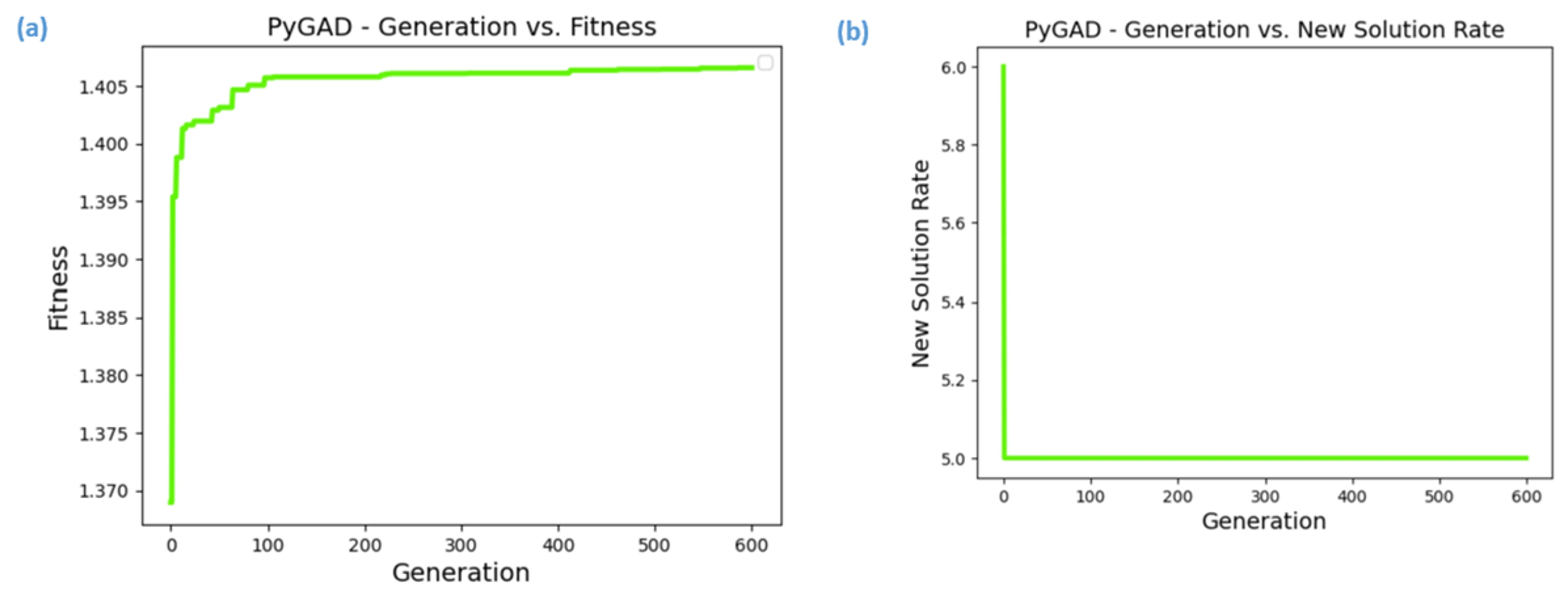 Fig. 6. (a) Generation vs fitness in Genetic Algorithm. (b) Generation vs new solution