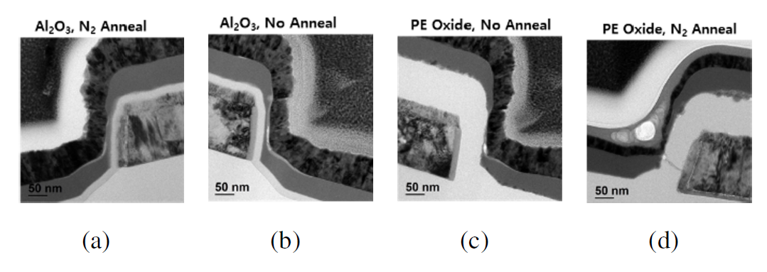 at Al2O3, (c) No_ N2_anneal at PE-Oxide, (d) N2_anneal at PE-Oxide.