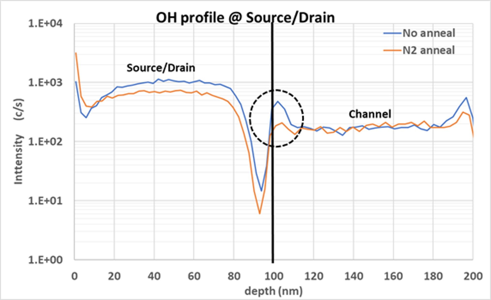Ioff characteristics of IGZO TFT. Also, the OH density of interface between the source/drain