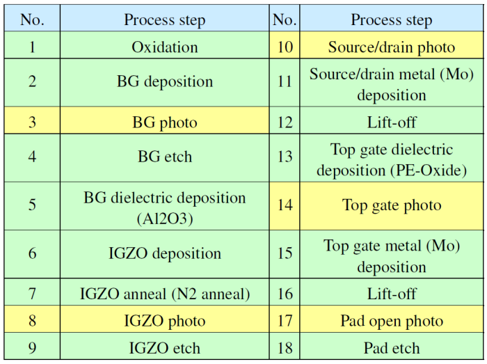 Table 1. CMOS BEOL process with dual gate IGZO TFT .