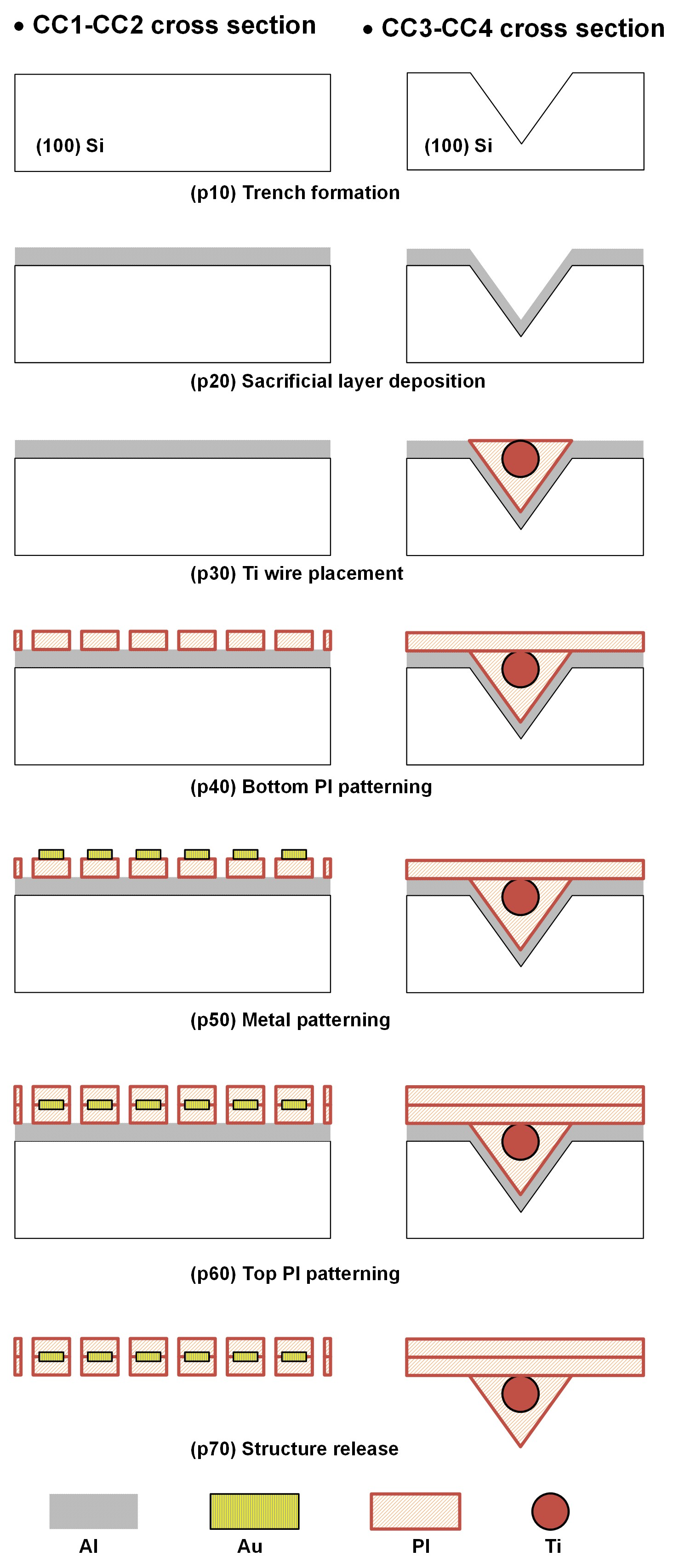 for mounting sub-millimeter Ti wires onto a 15 $\mu$m-thick PI-based flexible substrate.