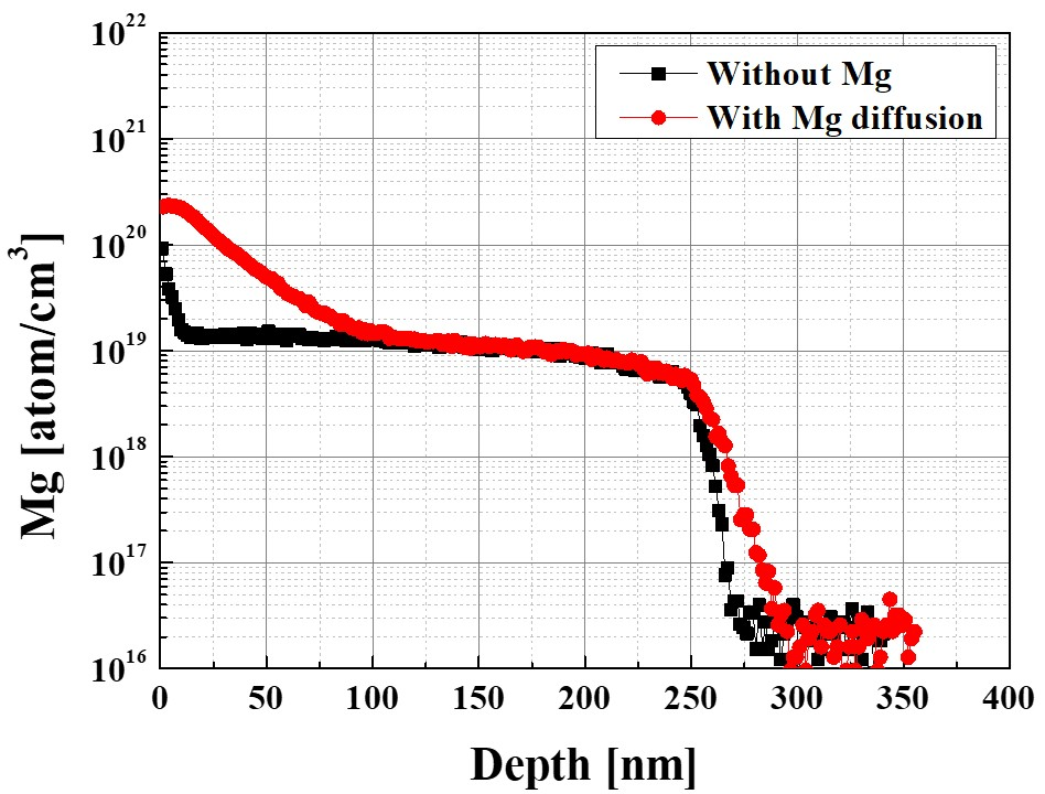 were identical to those in Figs. 1(a)-(c). As shown in Fig. 3, the SIMS results confirmed that the Mg-diffused region exhibited a significantly