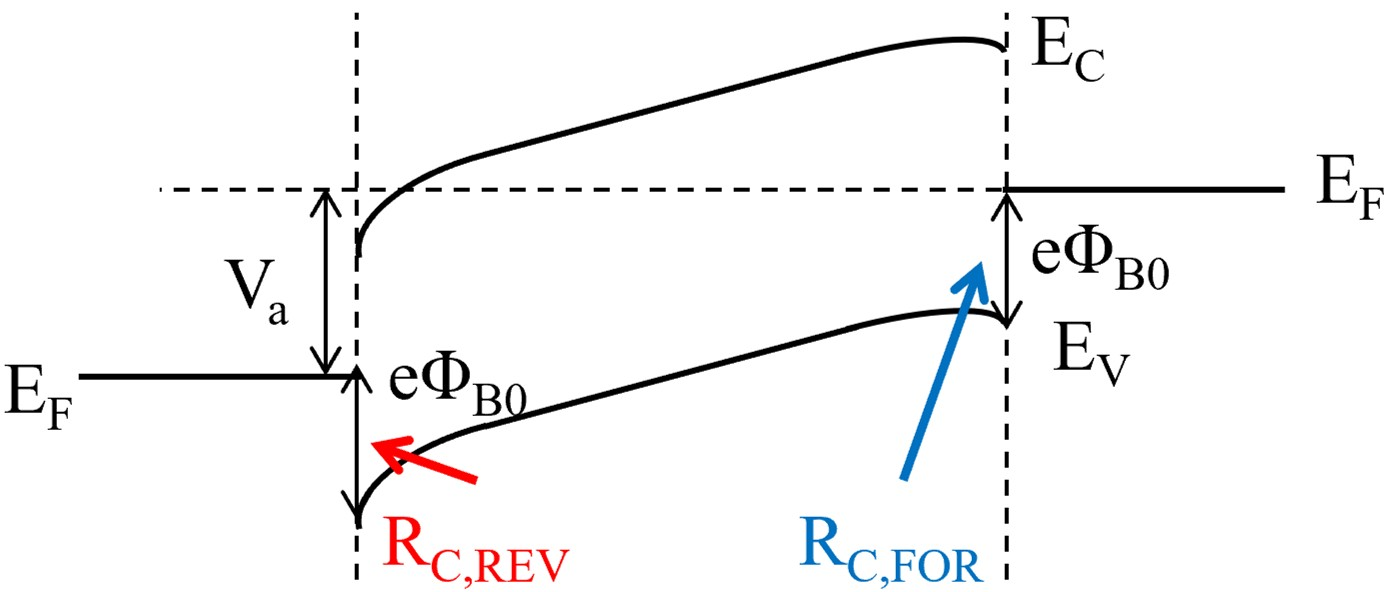 by modeling one side as an ideal ohmic contact. As shown in Fig. 5(b), the reverse-biased terminal overwhelmingly dominated the total contact resistance,