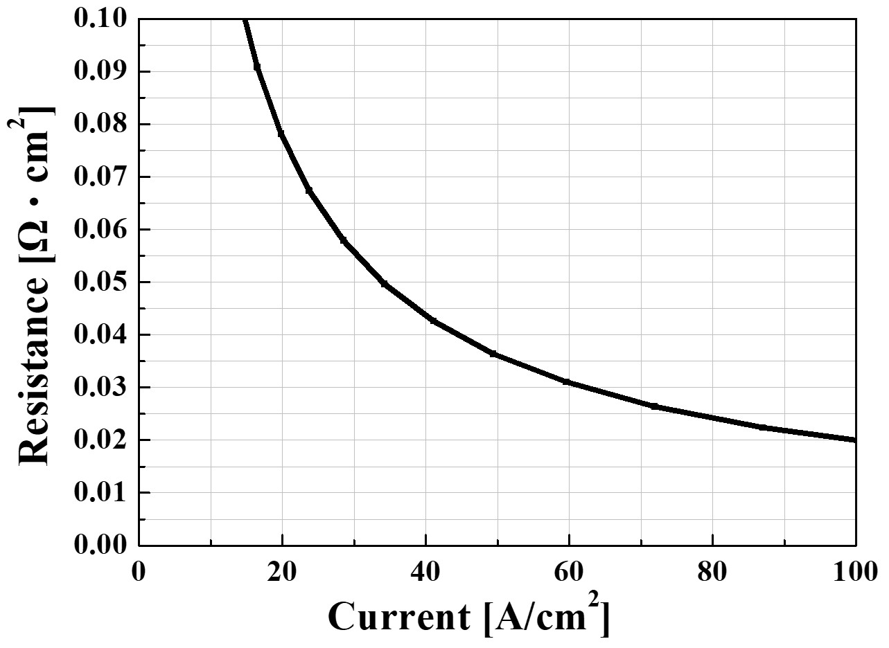 ohmic contact resistance. The contact resistance as a function of current density